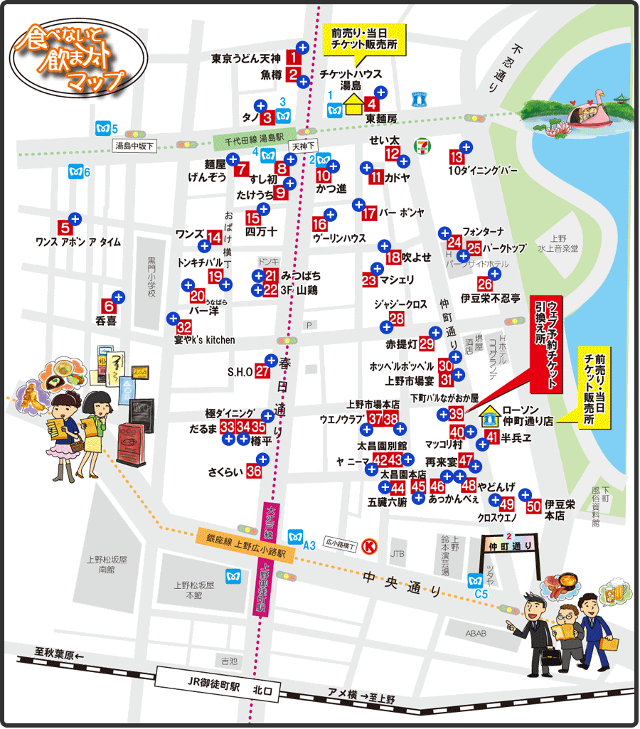 食べないと飲まナイトin上野仲町・湯島 - 参加店舗マップ